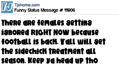 X is There are females getting ignored RIGHT NOW because football is back. Y'all will get the sidechick treatment all season. Keep ya head up tho