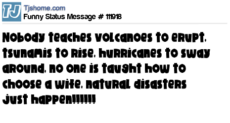X says Nobody teaches volcanoes to erupt, tsunamis to rise, hurricanes to sway around, no one is taught how to choose a wife, natural disasters just happen!!!!!!