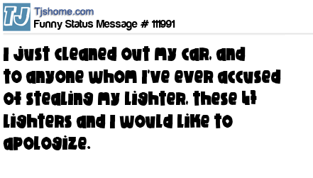 X I just cleaned out my car, and to anyone whom I've ever accused of stealing my lighter, these 47 lighters and I would like to apologize.