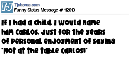 X If I had a child, I would name him Carlos, just for the years of personal enjoyment of saying "Not at the table Carlos!"