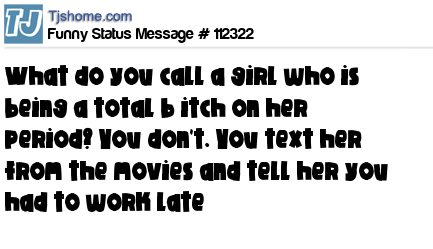 X says What do you call a girl who is being a total b itch on her period? You don't. You text her from the movies and tell her you had to work late