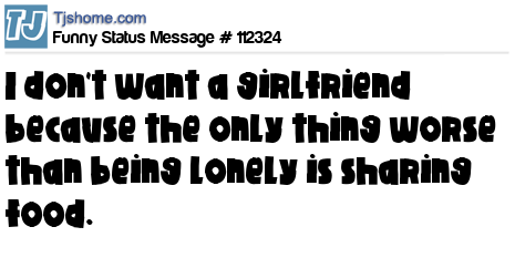 X says I don't want a girlfriend because the only thing worse than being lonely is sharing food.