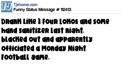X Drank like 3 Four Lokos and some hand sanitizer last night, blacked out and apparently officiated a Monday Night Football game.