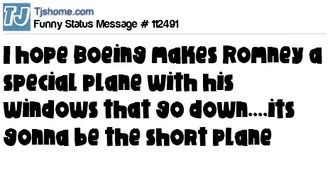 X says i hope Boeing makes Romney a special plane with his windows that go down....its gonna be the short plane