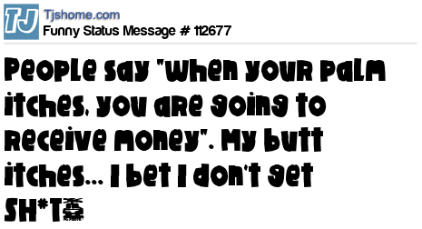 X People say "when your palm itches, you are going to receive money". My butt itches... I bet I don't get SH*T¡