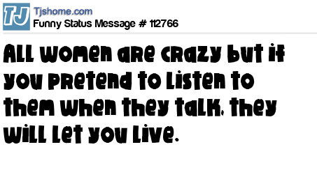 X says All women are crazy but if you pretend to listen to them when they talk, they will let you live.