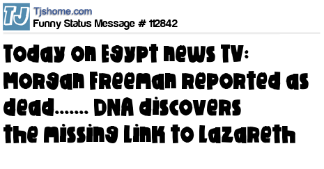 X is Today on Egypt news TV: Morgan Freeman reported as dead....... DNA discovers the missing link to Lazareth