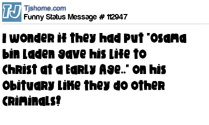X is I wonder if they had put "Osama bin Laden gave his Life to Christ at a Early Age.." on his Obituary like they do other Criminals?