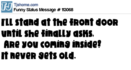 X says I'll stand at the front door until she finally asks, “Are you coming inside?” It never gets old.