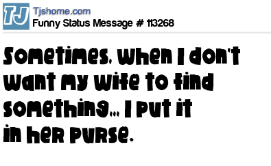 - # 121427 Sometimes when I don't want my wife to find something, I just put it in her purse.