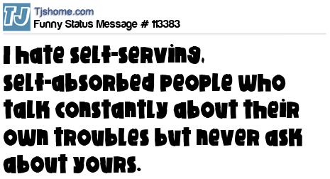 X says I hate self-serving, self-absorbed people who talk constantly about their own troubles but never ask about yours.