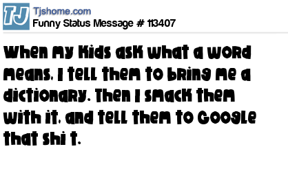 - # 114518 When my kids ask what a word means, I tell them to bring me a dictionary. Then I smack them with it, and tell them to Google that sh!t.