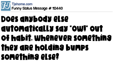 X says Does anybody else automatically say "Ow!" out of habit, whenever something they are holding bumps something else?