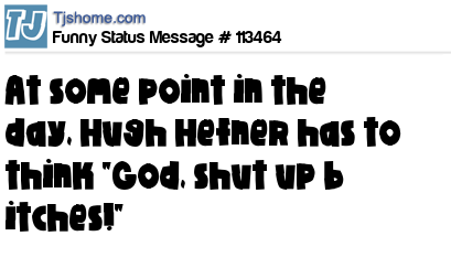 X says At some point in the day, Hugh Hefner has to think "God, shut up b itches!"