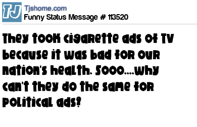 X They took cigarette ads of TV because it was bad for our nation's health. Sooo....why can't they do the same for political ads?
