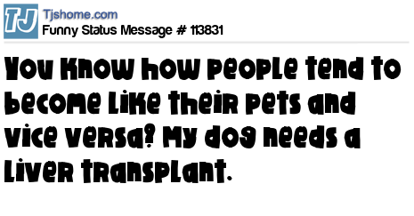 X says You know how people tend to become like their pets and vice versa? My dog needs a liver transplant.