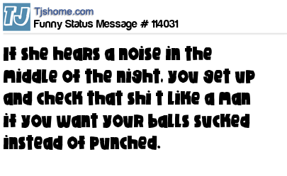 X says If she hears a noise in the middle of the night, you get up and check that shi t like a man if you want your balls sucked instead of punched.