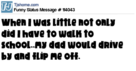 X says when I was little not only did I have to walk to school..my dad would drive by and flip me off.