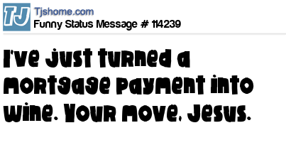 - # 228 thinking so what if Jesus turned water into wine... I turned a whole student loan into beer once. your move Jesus.