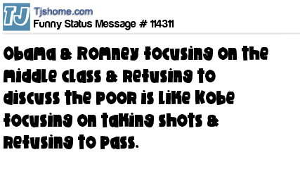 X Obama & Romney focusing on the middle class & refusing to discuss the poor is like Kobe focusing on taking shots & refusing to pass.