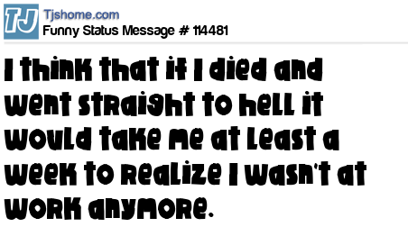 - # 19542 If I died and went straight to hell, it would take me at least a week to realize I wasn't at work anymore