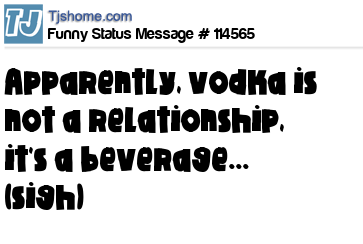 X says Apparently, vodka is not a relationship, it's a beverage... (sigh)