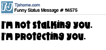 - # 12016 was told recently that it really doesn't constitute stalking if you inform the other party. I like that. So, Greater Facebook Community, I'm probably stalking you.