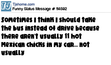 - # 83439 Sometimes I take the bus instead of drive because there aren't usually 11 hot Mexican chicks in my car.