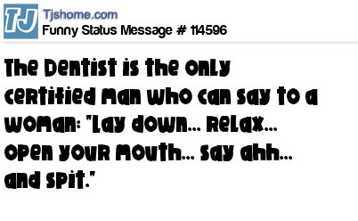 - # 50638 The Dentist is the only man certified to say to a woman, "Lay down, relax, open wide, say ahh, now spit."