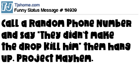 X says Call a Random Phone Number and say "They didn't make the drop Kill him" them hang up. Project Mayhem.