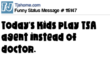 - # 38139 It's normal for kids to play 'doctor.' Start worrying if you find them playing 'airport security.'