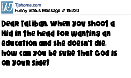 X Dear Taliban, When you shoot a kid in the head for wanting an education and she doesn't die, how can you be sure that God is on your side?