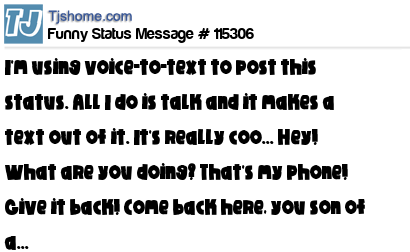 X I'm using voice-to-text to post this status. All I do is talk and it makes a text out of it. It's really coo... Hey! What are you doing? That's my phone! Give it back! Come back here, you son of a...