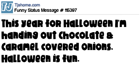 - # 115163 This year for Halloween I'm handing out Carmel covered onions. Halloween is fun.