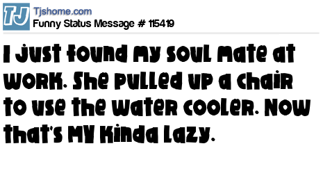 X says I just found my soul mate at work. She pulled up a chair to use the water cooler. Now that's MY kinda lazy.
