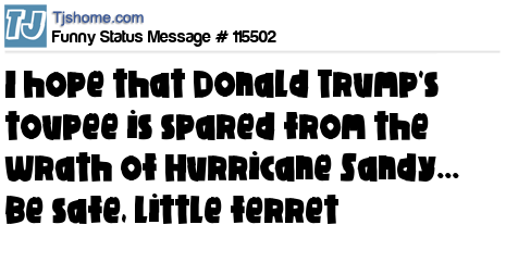 X I hope that Donald Trump's toupee is spared from the wrath of Hurricane Sandy... Be safe, little ferret