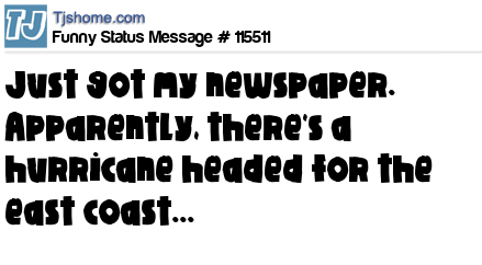 X says just got my newspaper. Apparently, there's a hurricane headed for the east coast...