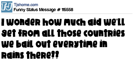X says I wonder how much aid we'll get from all those countries we bail out everytime in rains there??