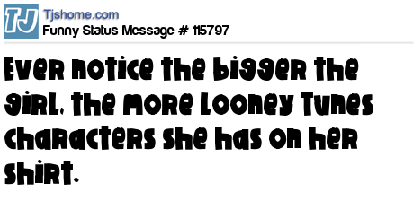 X says Ever notice the bigger the girl, the more Looney Tunes characters she has on her shirt.