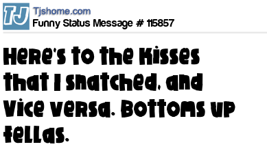 X is Here's to the kisses that I snatched, and Vice versa. Bottoms up fellas.