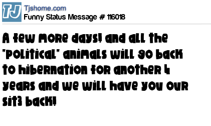 X a few more days! and all the "political" animals will go back to hibernation for another 4 years and we will have you our sit3 back!