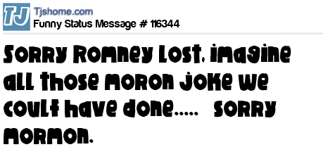 X is Sorry Romney lost, imagine all those moron joke we coulf have done..... sorry mormon.