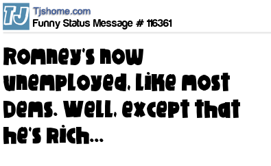 X says Romney's now unemployed, like most Dems. Well, except that he's rich...