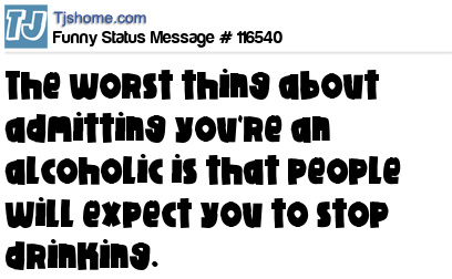 - # 154082 I think the Worst Part about admitting you are an Alcoholic ..is People expect you to Quit Drinking.