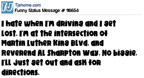 X I hate when I'm driving and I get lost. I'm at the intersection of Martin Luther King Blvd. and Reverend Al Sharpton Way. No biggie, I'll just get out and ask for directions.