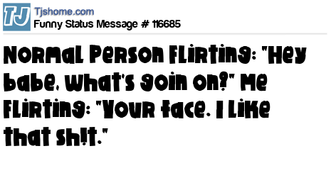 X Normal Person Flirting: "Hey babe, what's goin on?" Me Flirting: "Your face. I like that sh!t."