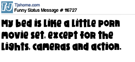 X says My bed is like a little p0rn movie set, except for the lights, cameras and action.