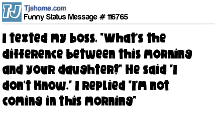 - # 35903 i text one of my boss "Whats the difference between this morning and your daughter?".He says "I dont know" .I say "I'm not cuming in this morning
