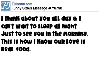 X says I think about you all day & I can't wait to sleep at night just to see you in the morning. This is how I know our love is real, food.