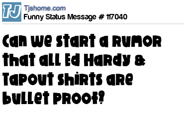 X is Can we start a rumor that all Ed Hardy & Tapout shirts are bullet proof?